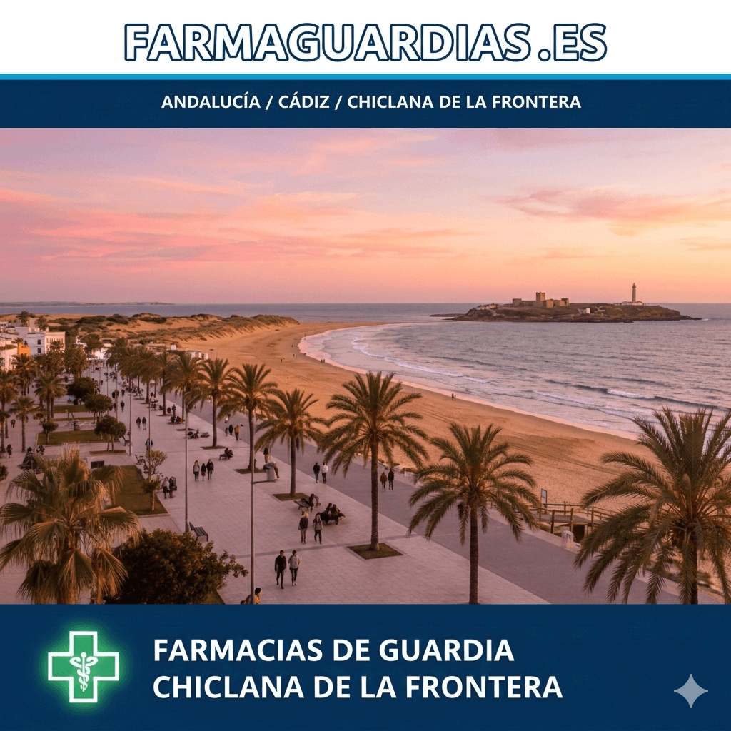 Este servicio muestra las farmacias de guardia en Chiclana de la Frontera basándose en la información pública disponible. Los horarios de guardia suelen ser de 9:00 a 9:00 del día siguiente, o de 22:00 a 9:00 en turnos nocturnos, dependiendo de la normativa local.